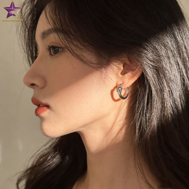 星屿不锈钢法式迷你骷髅头造型耳扣 环保工艺 百搭耳环小众设计