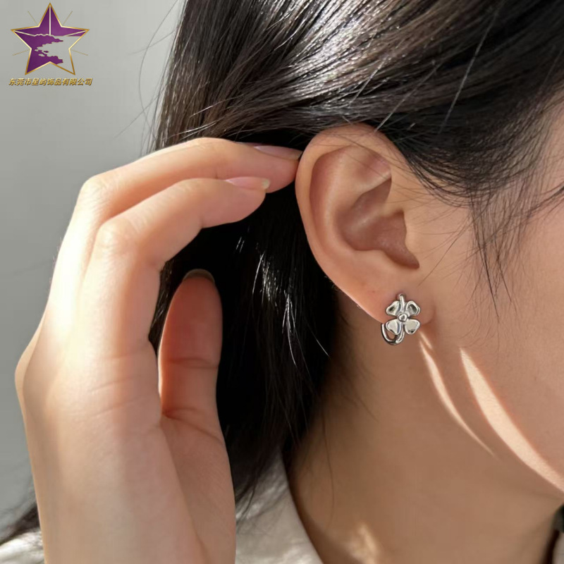 星屿不锈钢欧美高级感精致四叶草耳扣时尚甜美少女心蝴蝶结耳圈女