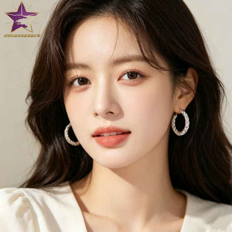 星屿不锈钢 螺旋纹耳圈ins小众个性金属风百搭线条麻花镂空耳饰女