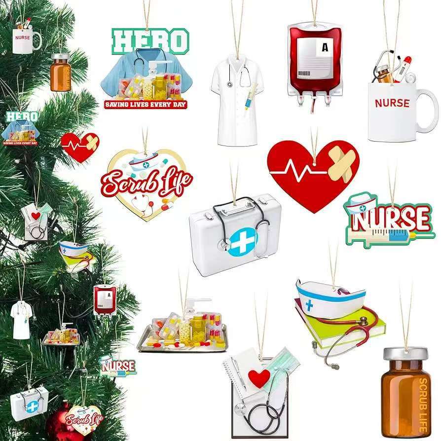 跨境新品国际护士节木质悬挂装饰圣诞树装饰品