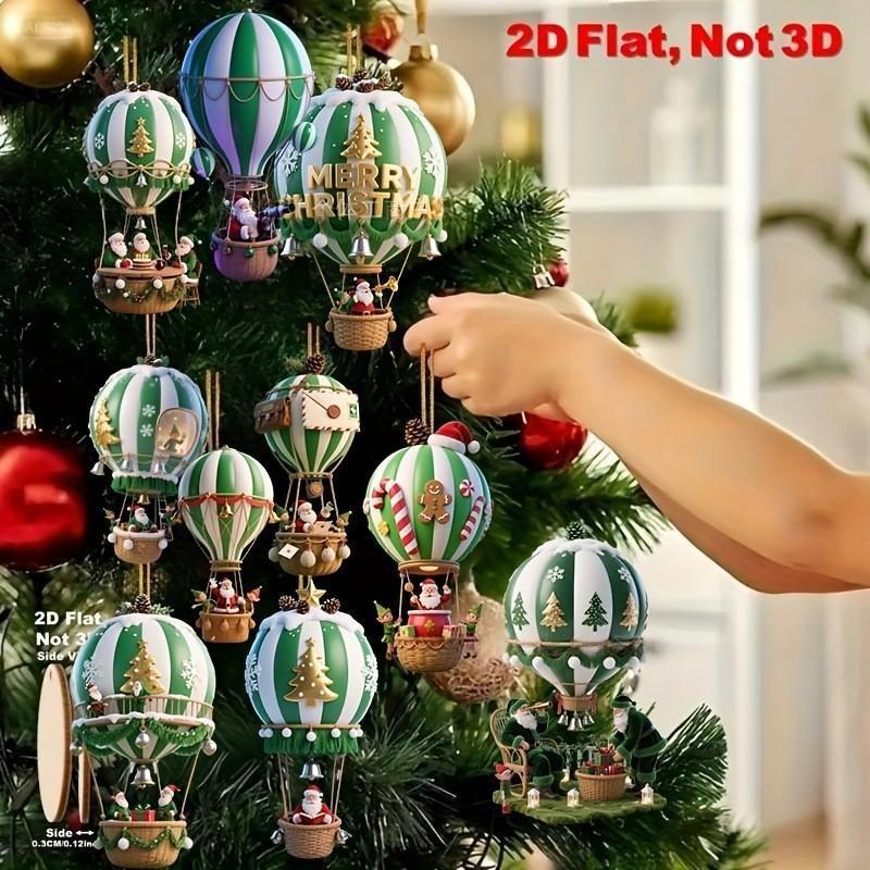 跨境新品20件创意2D热气球木质装饰挂件适用于圣诞树装饰布置