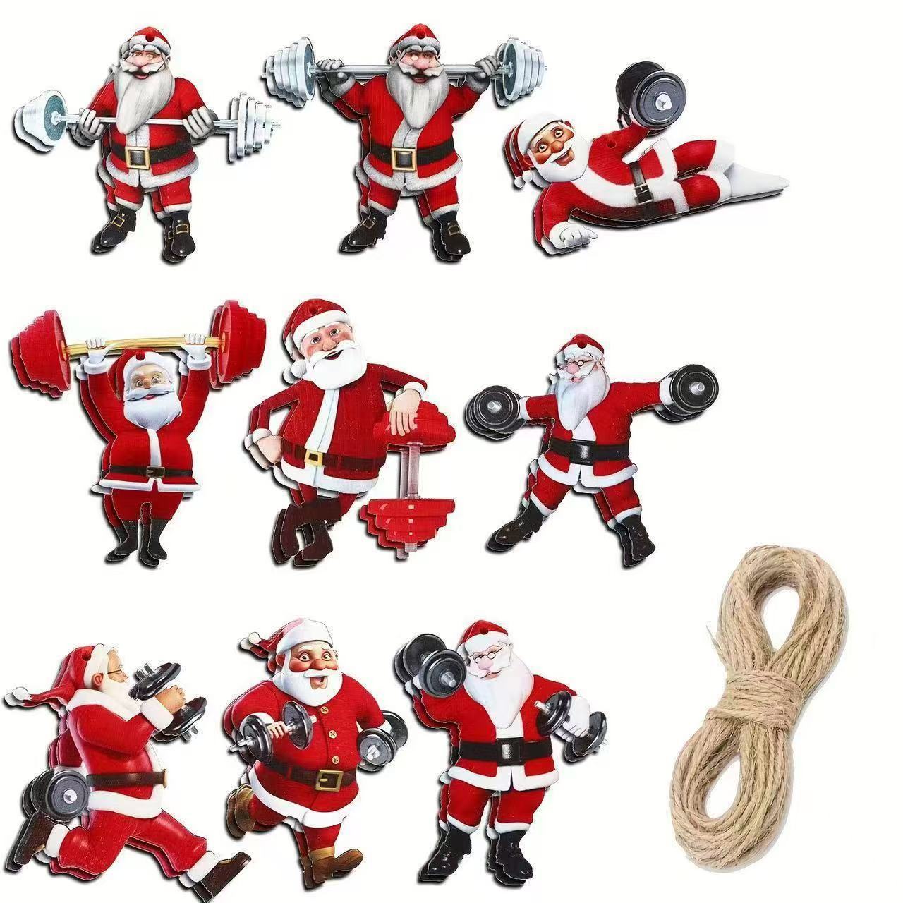 跨境圣诞老人举重复古木质健身房装饰适用于圣诞节万圣节装饰