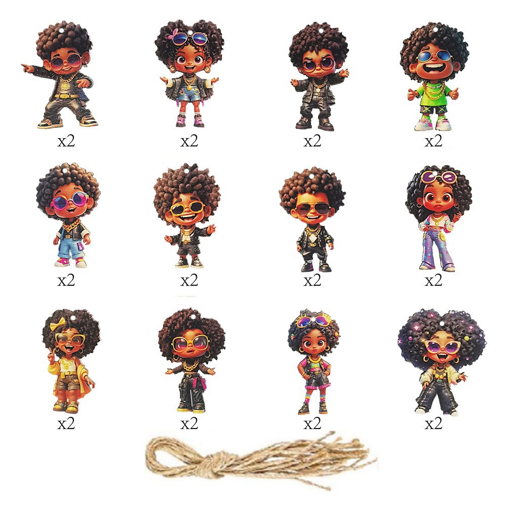 跨境新品木质悬挂装饰12件活力四射2D平面木质人物装饰挂件
