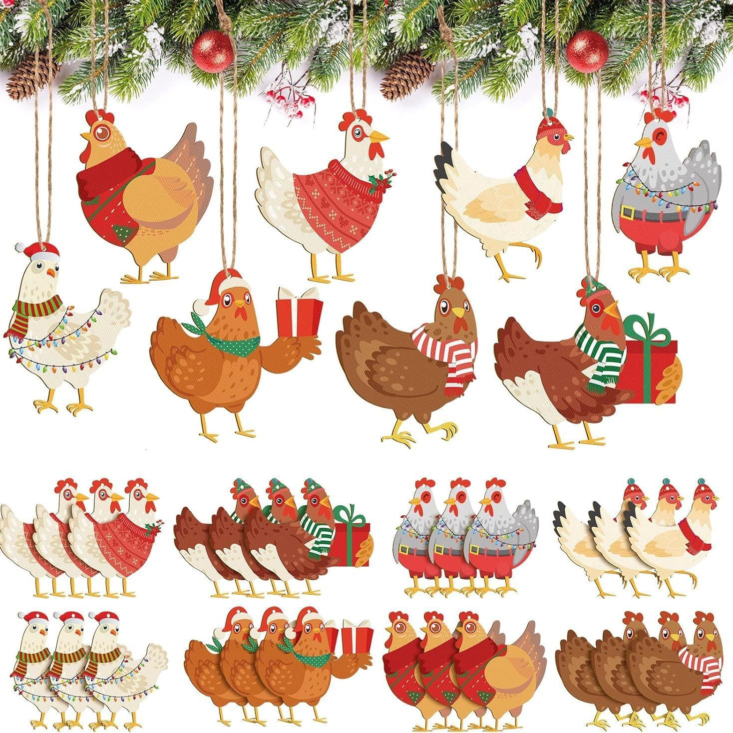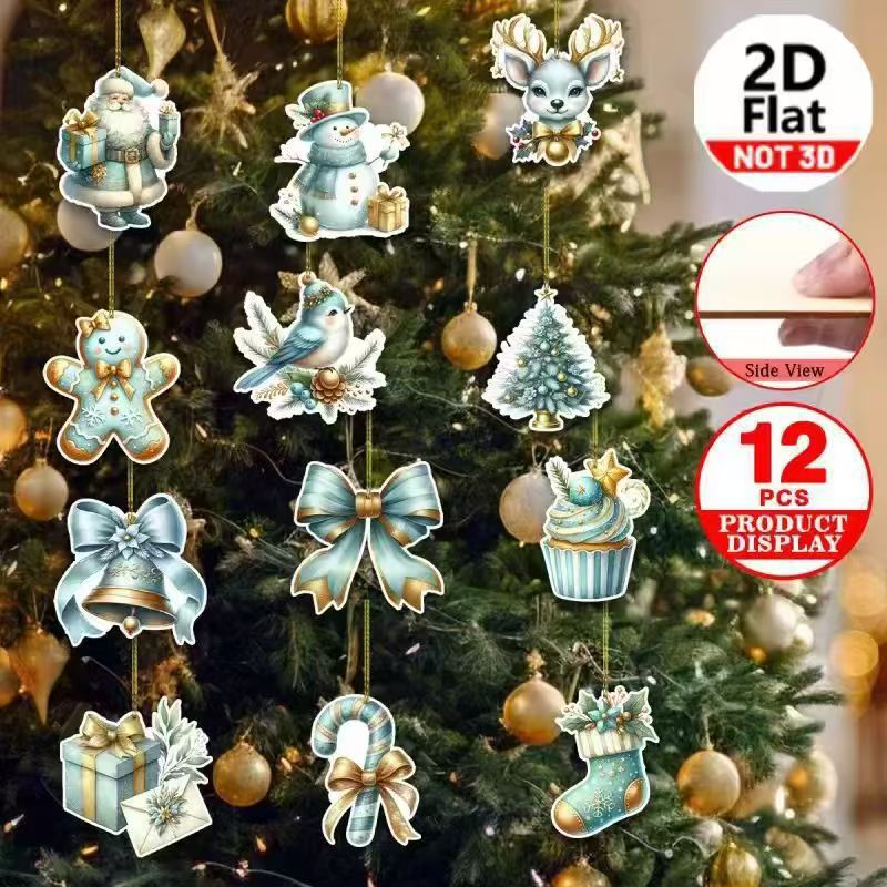 跨境新品24件冷色系圣诞木质装饰品挂件节日派对家居装饰