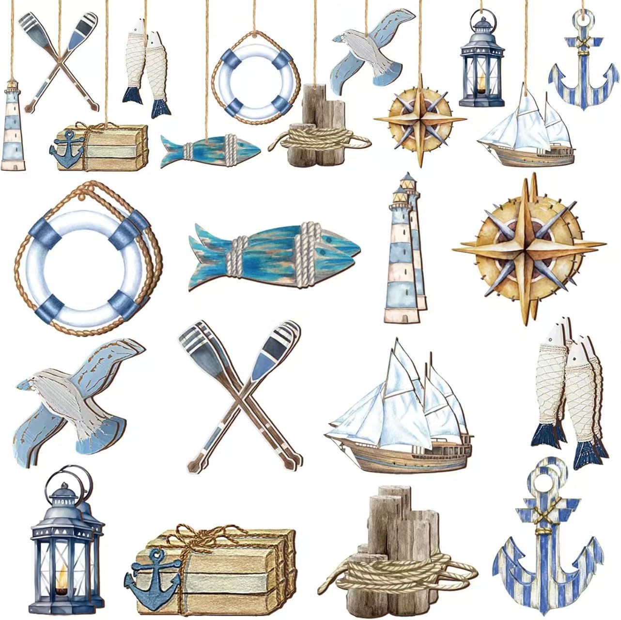 夏季木制装饰品海洋海滩树装饰海岸航海导航木制镂空夏季挂饰夏季