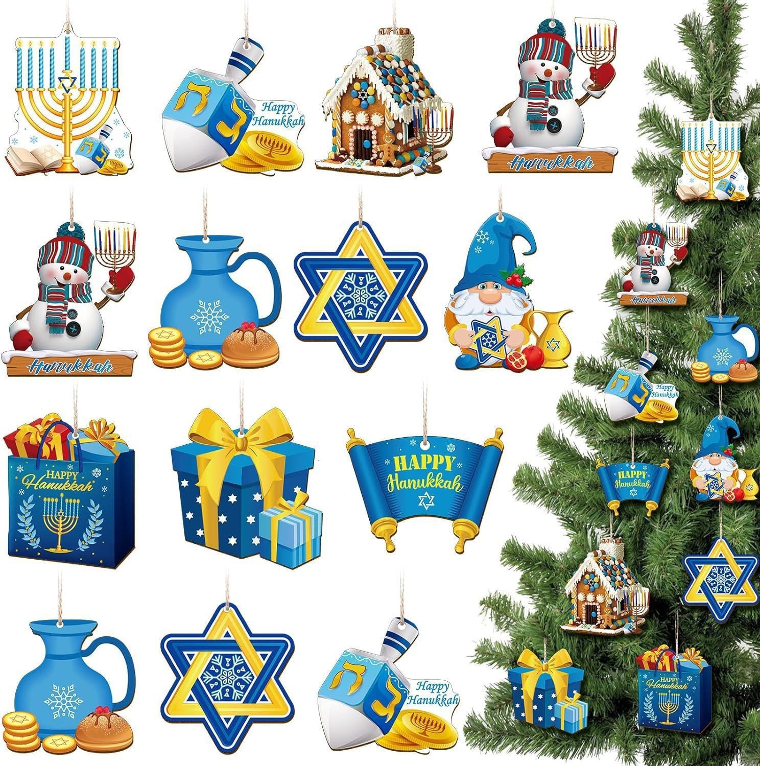 20件创意蓝色光明节木质侏儒小矮人雪人装饰挂件节日装饰挂件