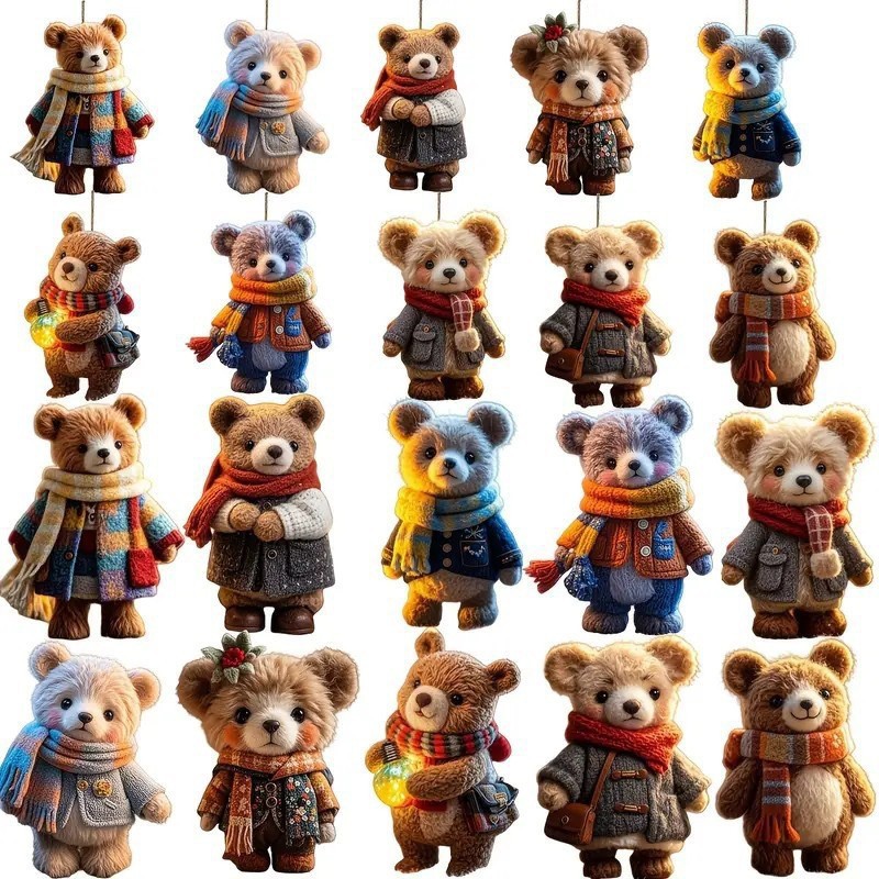 跨境新品可爱毛衣小熊2d平面木质装饰挂件圣诞树装饰节日派对装饰