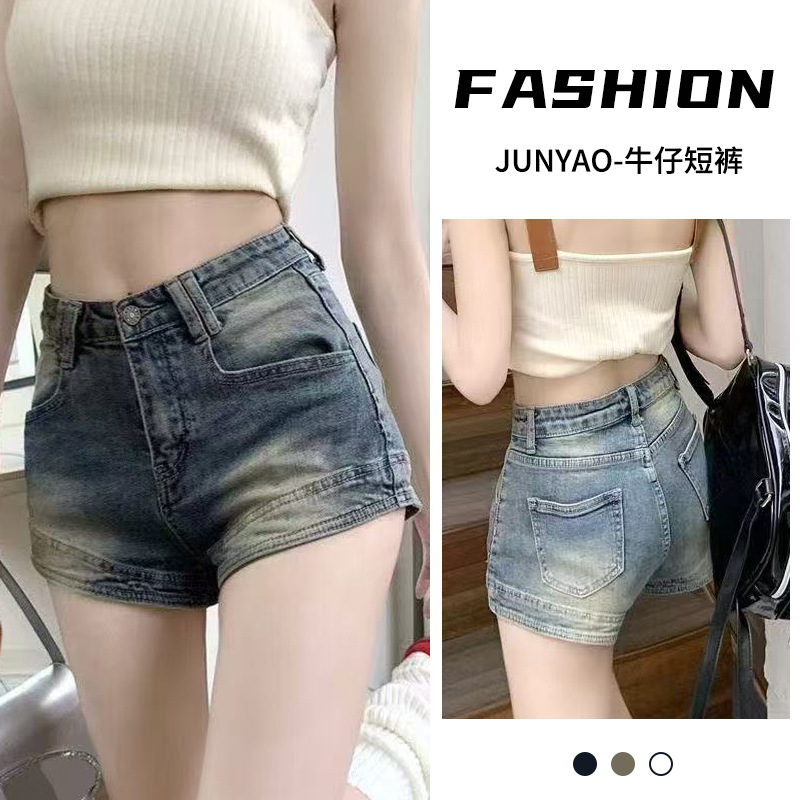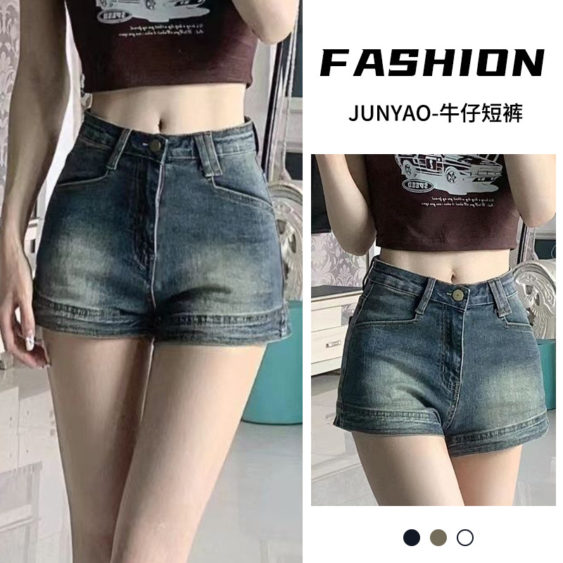 辣妹热裤美式复古做旧牛仔裤女夏季小个子高弹显瘦A字裤牛仔热裤