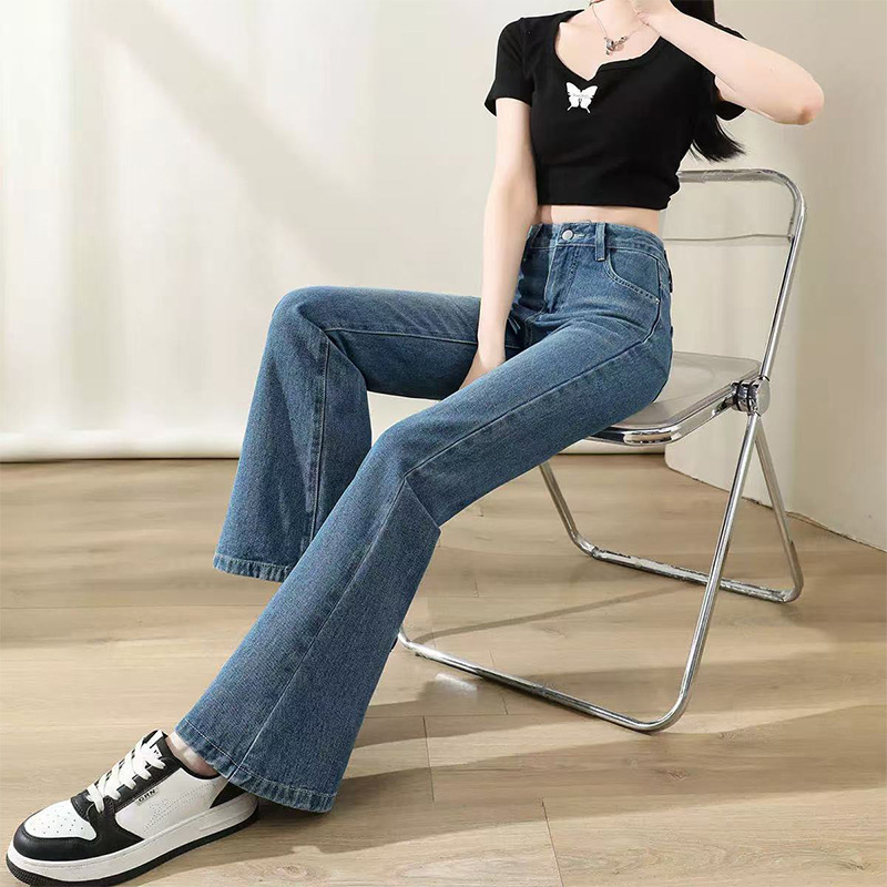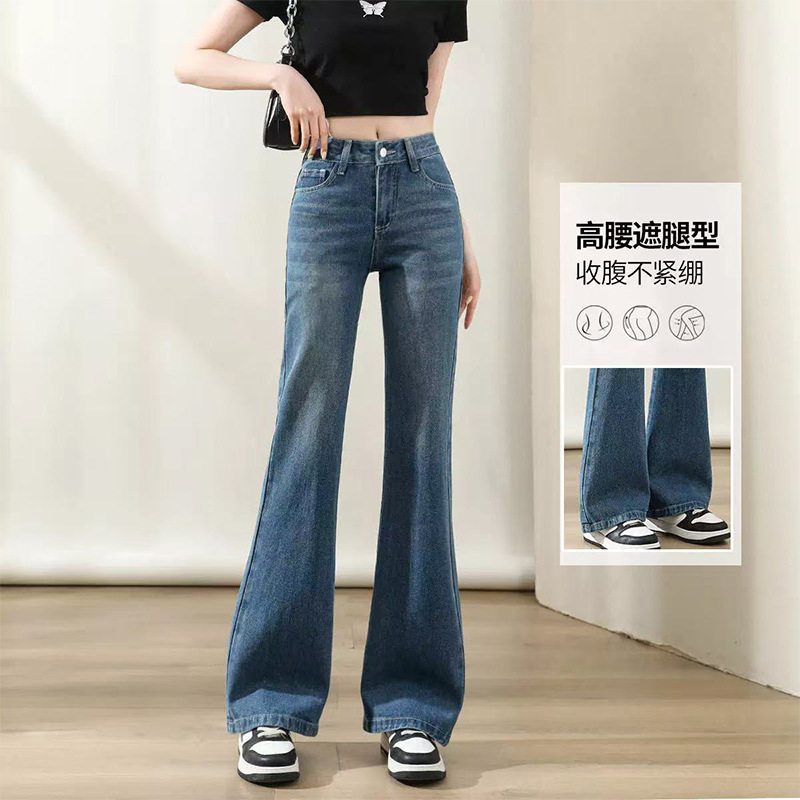 2025薄款牛仔裤女 高腰女装牛仔长裤时尚显瘦显高微喇裤马蹄裤子