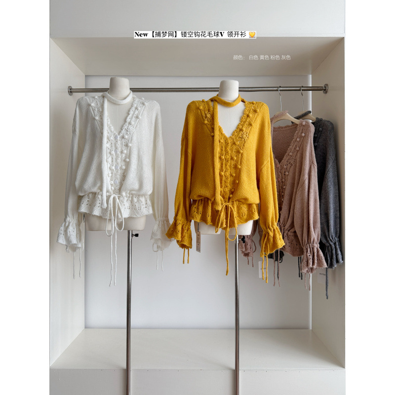 秋日私语毛衣女2025年秋宽松薄款针织上衣搭配挂脖蕾丝打底