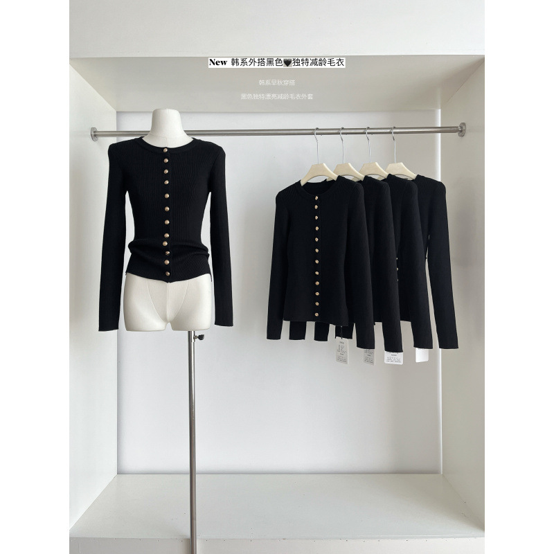 2025新针织开衫女韩系早秋穿搭上衣外搭黑色独特漂亮减龄毛衣外套