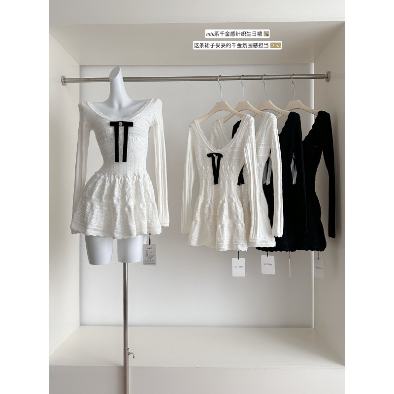 2025秋新款千金感系连衣裙女白月光韩系蝴蝶结长袖针织小白裙