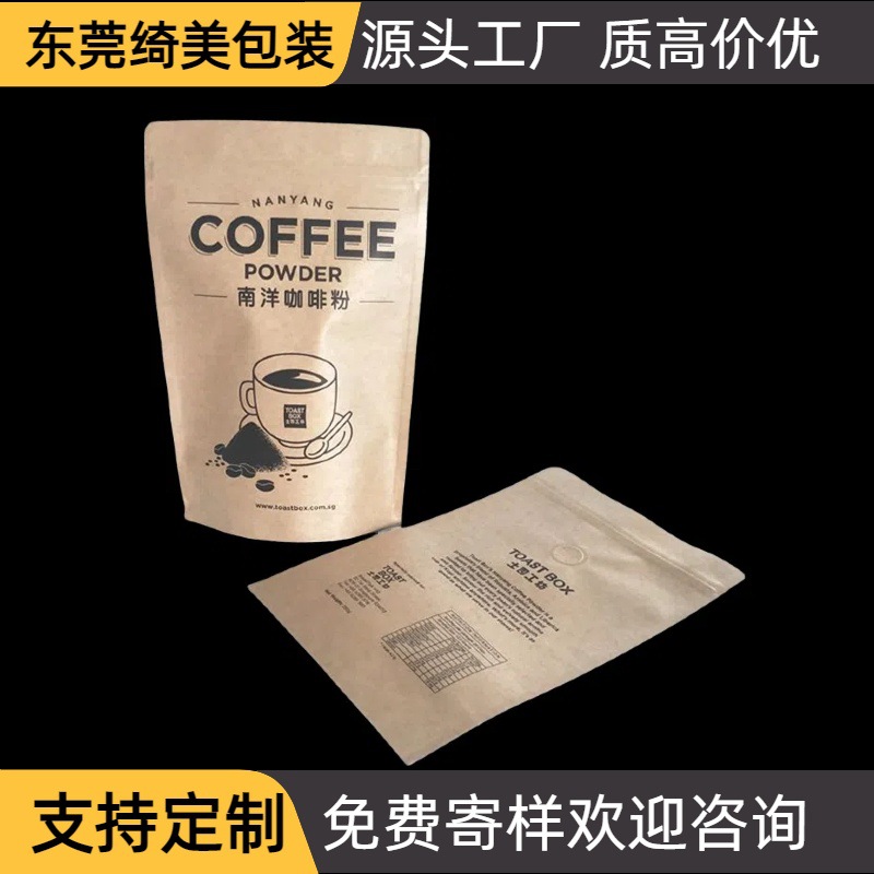 定制牛皮纸自封袋 咖啡粉茶叶果脯食品包装袋 排气阀自立拉链袋