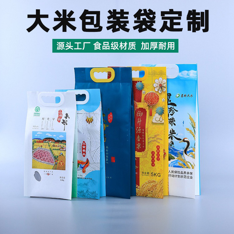 真空食品包装袋定制中封尼龙复合袋四边封彩印手提大米包装袋定制