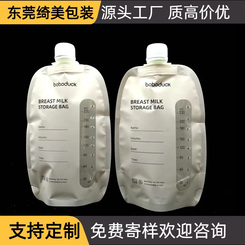 厂家定制一次性双密封感温平口母乳储存袋 婴儿便捷式壶嘴母乳袋
