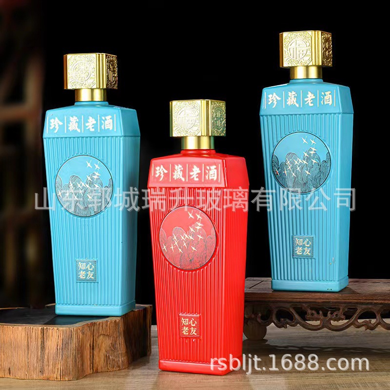 瑞升白酒玻璃瓶生产厂家供应500ml喷色酒瓶 新款酒瓶 创意设计酒