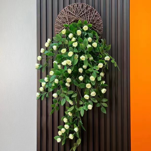仿真玫瑰花壁挂阳台家具墙体装饰吊兰花藤室内客厅玫瑰花壁挂藤条