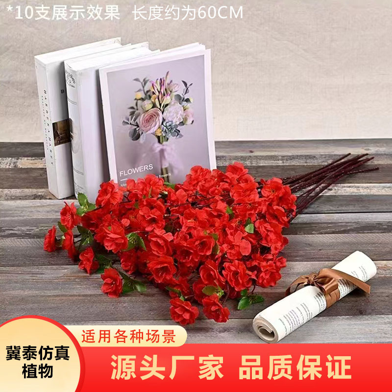 批发仿真桃花枝加密婚庆家居室内外装饰物布景假花花材人造仿真花