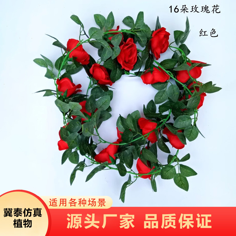 仿真藤条九头玫瑰花藤绿植造景遮挡装饰高档仿真绿植玫瑰花墙
