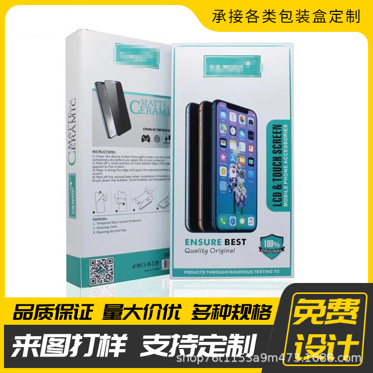 采购防偷窥钢化膜中性彩盒印刷华为苹果手机钢化膜包装盒定制