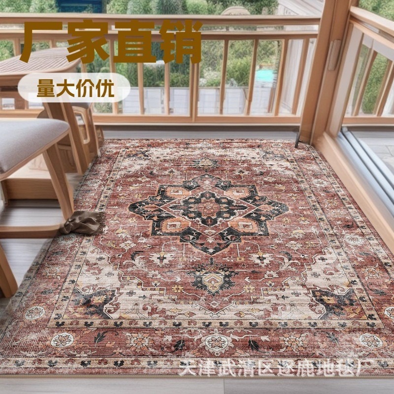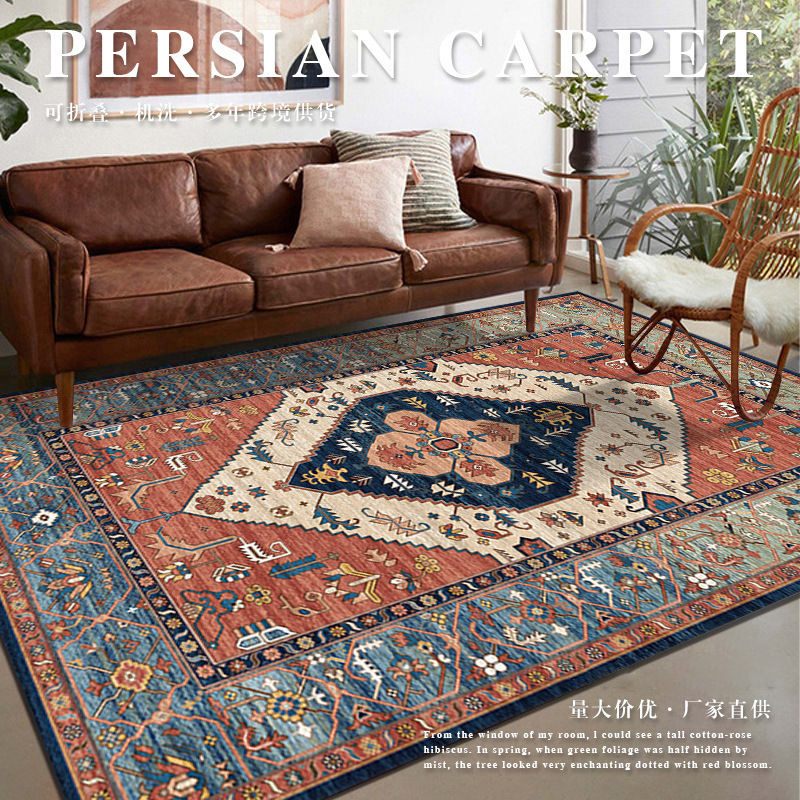 跨境复古波斯地毯客厅易打理可折叠水洗仿羊绒地毯卧室床边地垫