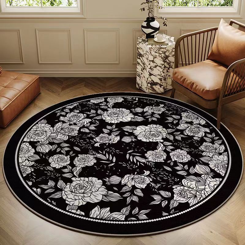 高级客厅地毯法式复古圆形卧室书房垫子转椅梳妆台地垫好打理简约