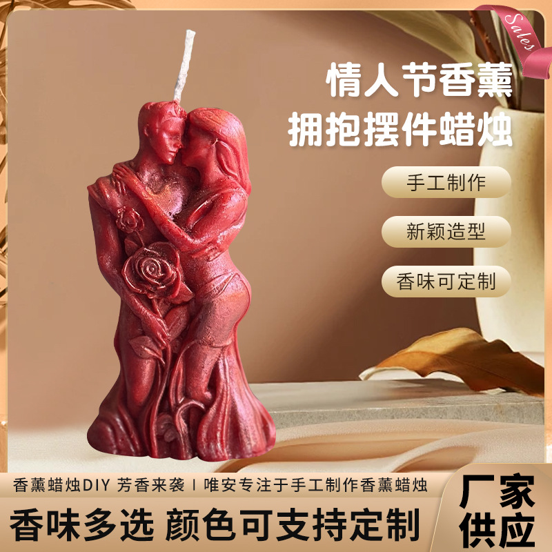 现货浪漫手工香薰蜡烛情人节情侣拥抱520摆件礼盒婚礼伴清香香氛