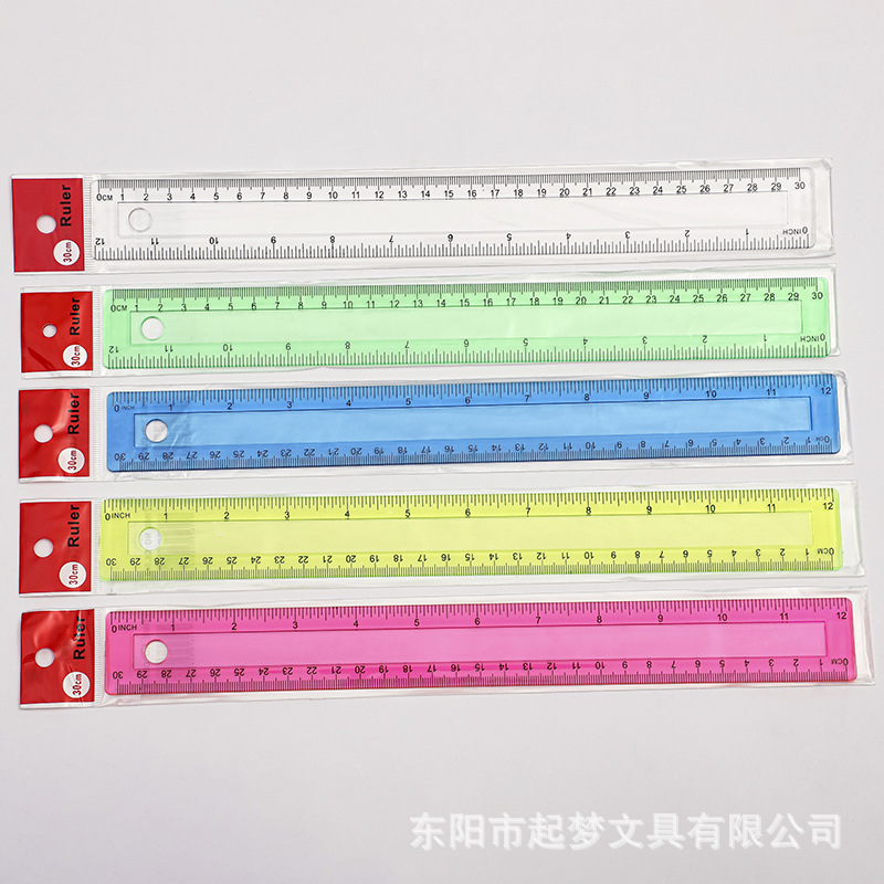 创意糖果色尺子 单个opp袋学生直尺30cm 塑料广告尺凹尺带洞单孔