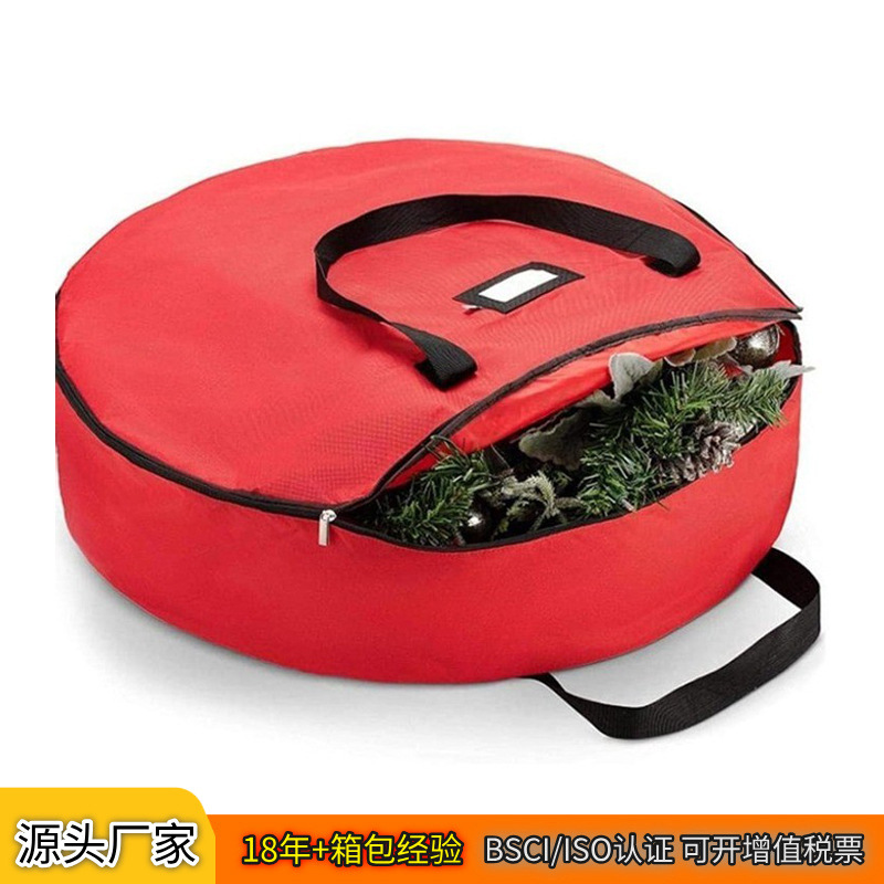 大容量圣诞袋牛津布圆形圣诞用品收纳袋红色手提圆形圣诞袋