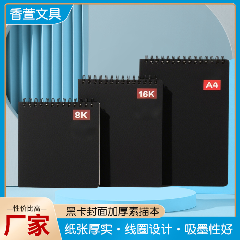 新款黑卡封面加厚素描本A4美术生图画本空白8K绘画本子手绘速写本