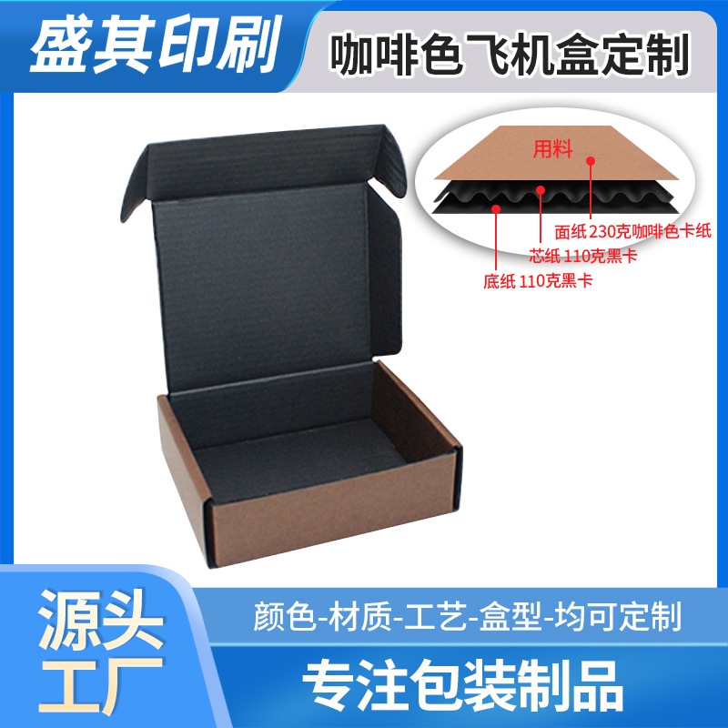 咖啡色棕色飞机盒定制 特硬首饰包装盒 瓦楞纸盒批发三层折叠首饰