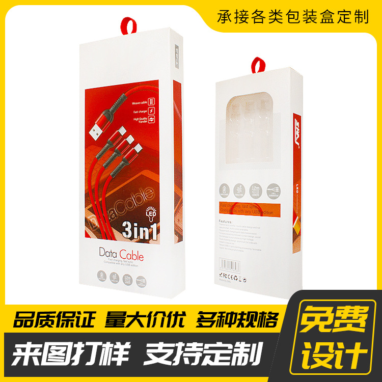 一拖三数据线包装纸盒PVC开窗彩盒批发包装盒印刷便携彩印盒