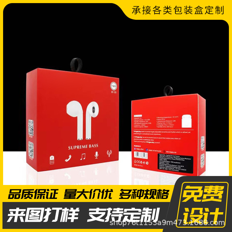 耳机彩盒包装数码纸盒设计有线耳机包装盒厂家银卡纸双插盒定制