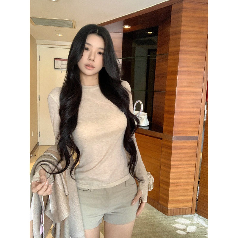 2025新款慵懒风薄款宽松V领长袖T恤女装秋季减龄显瘦百搭罩衫上衣