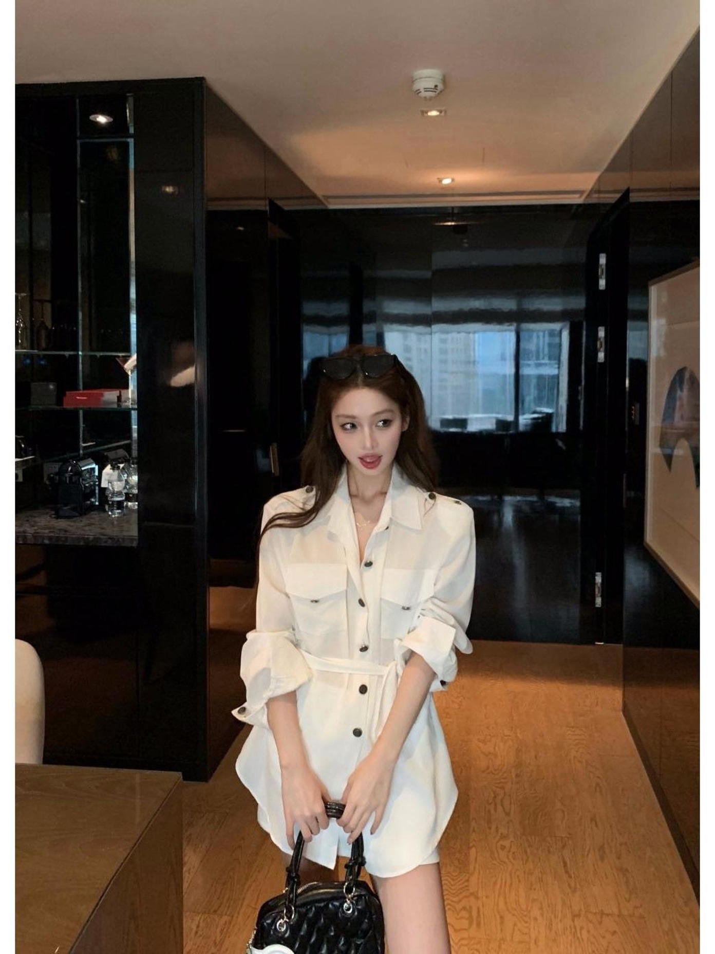 2025新款秋装法式高级感时尚气质休闲系带中长款长袖衬衫上衣女潮