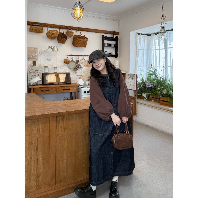 2025新款慵懒风套装纯色气质长袖衬衫女秋季牛仔背心连衣裙两件套