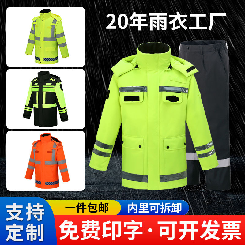 定制执勤反光雨衣雨裤套装新款户外防雨防风安全服男骑行防护外套