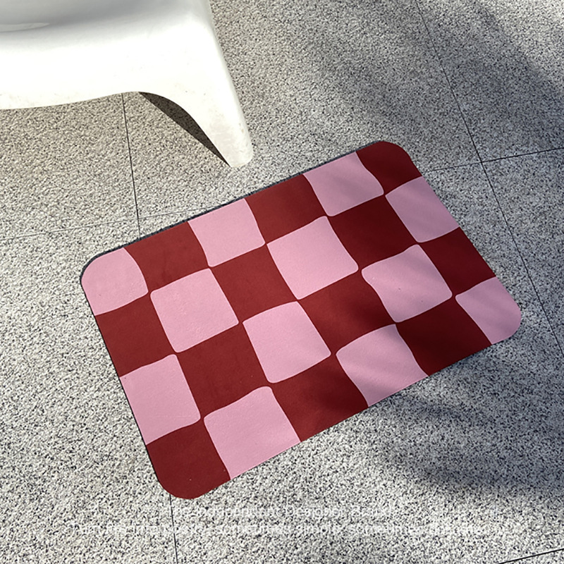 ins风格子软硅藻泥地垫棋盘格吸水易清洗门垫家用卫生间防滑脚垫