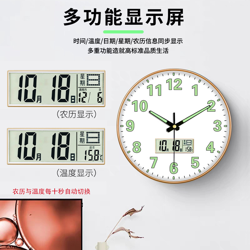 12英寸夜光钟表挂钟客厅简约卧室静音石英钟挂墙挂表家用时钟