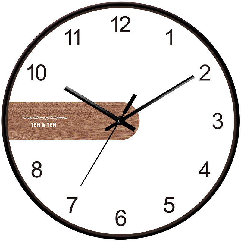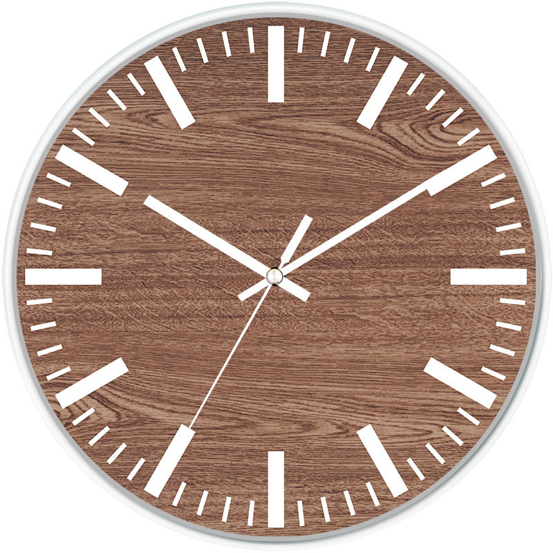 12英寸仿木纹家用创意潮流装饰北欧简约大气挂墙挂钟客厅卧室钟表