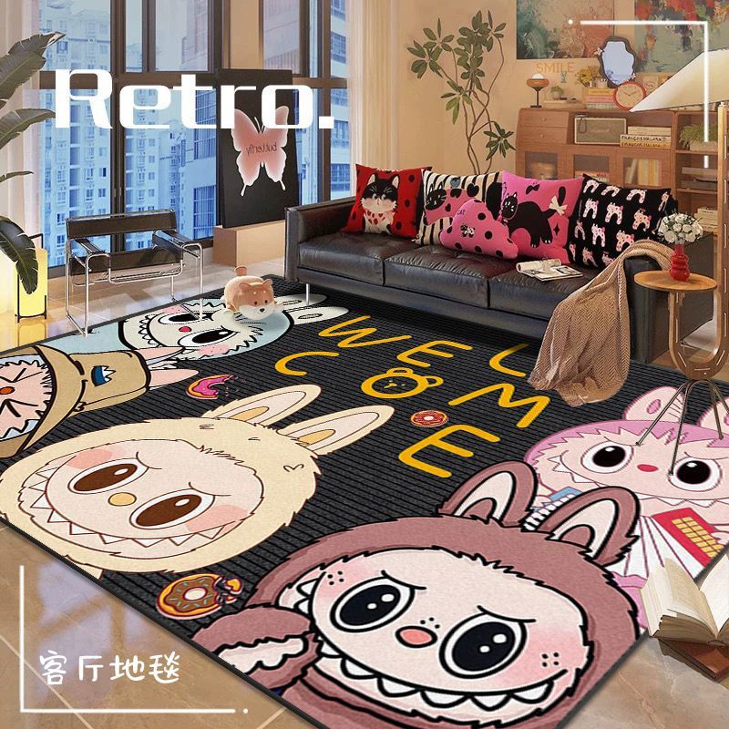 热销拉布布卡通入户地毯 除尘耐磨水晶绒地毯进门门口脚垫