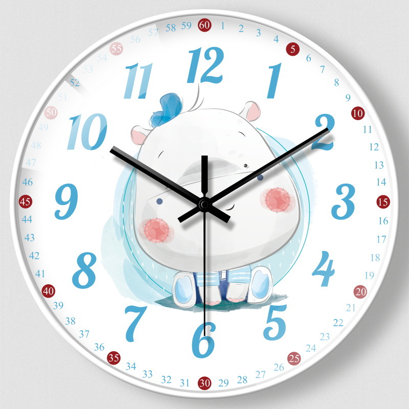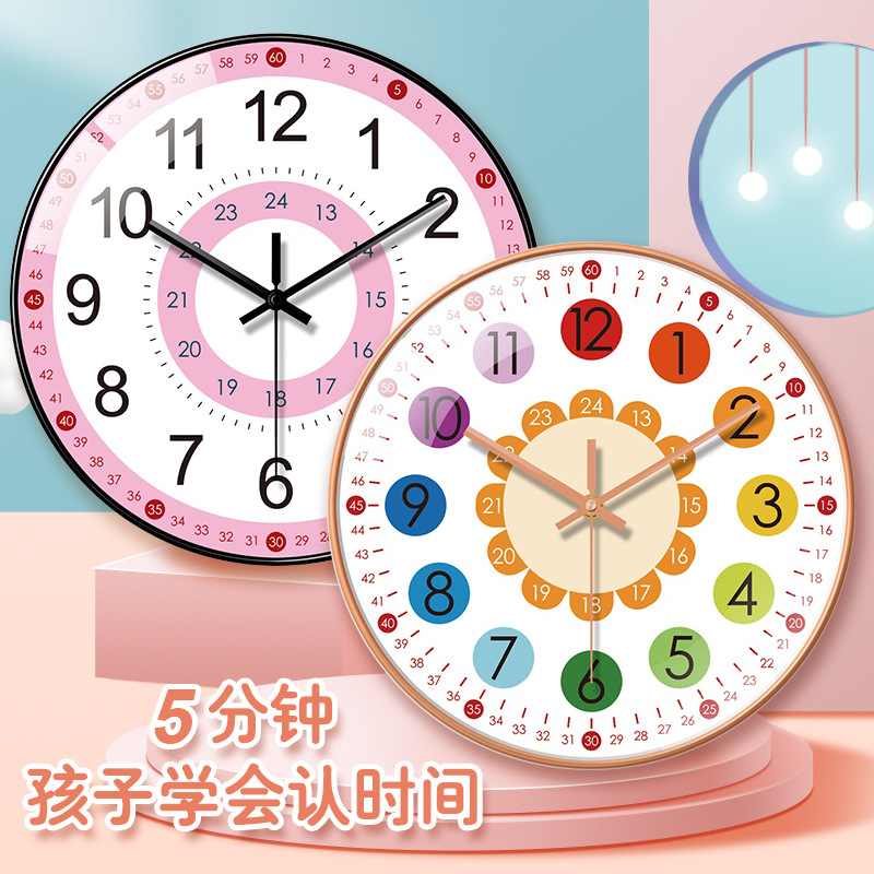 12英寸早教学习静音挂钟客厅家用卧室钟表学生儿童房七彩挂墙时钟