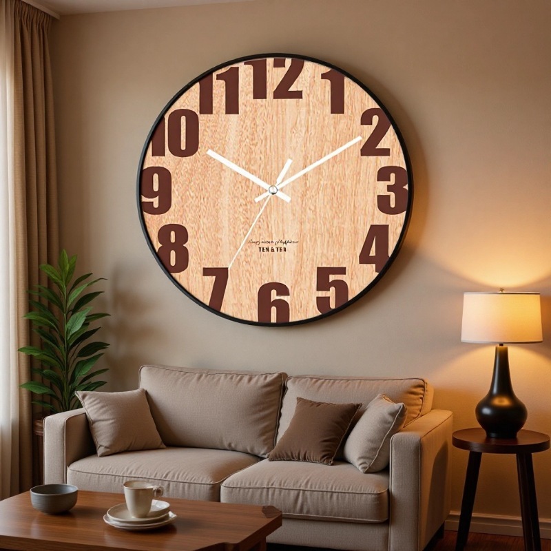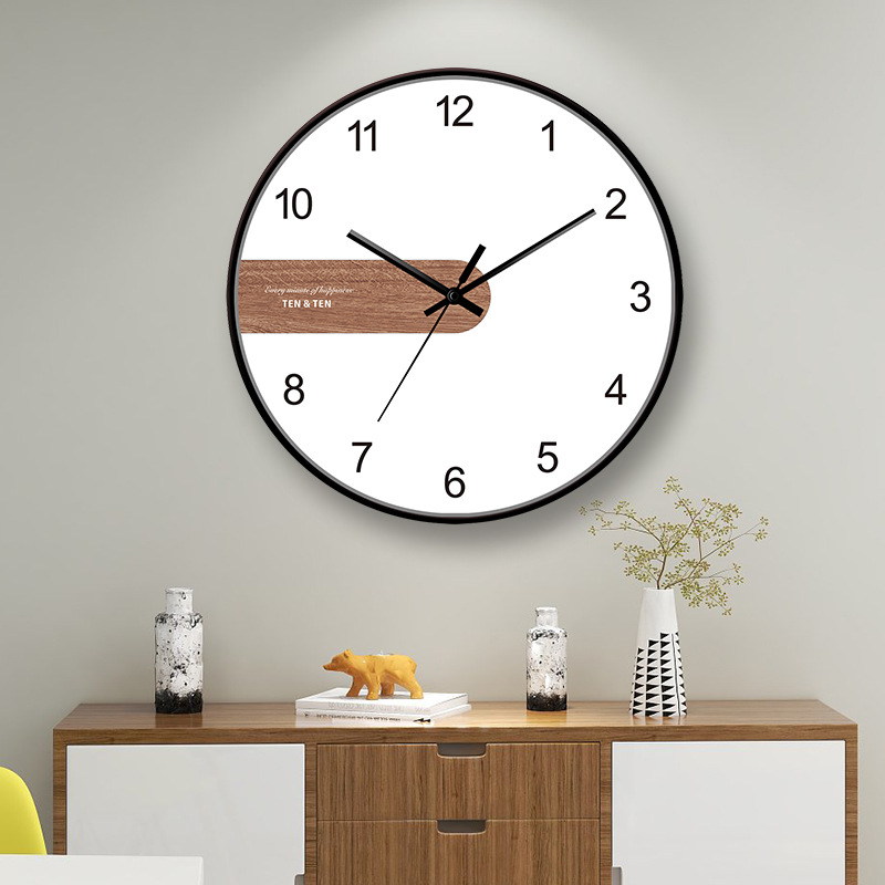 10英寸仿木纹家用创意潮流装饰北欧简约大气挂墙挂钟客厅卧室钟表