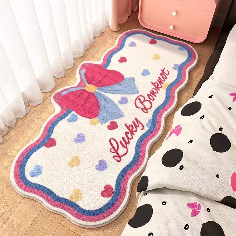简约蝴蝶结仿羊绒卧室床边毯长条地垫客厅房间加厚沙发短融地毯
