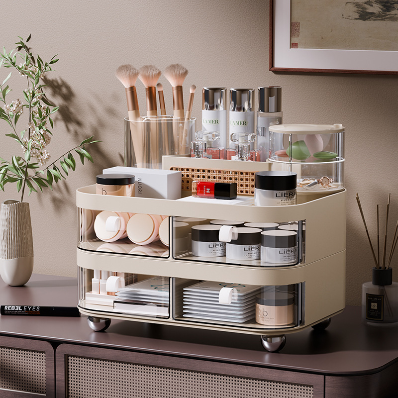 新款桌面化妆品置物架护肤品口红整理收纳盒抽屉式梳妆台化妆刷旋