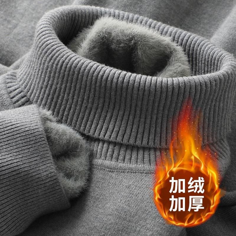 秋冬一体绒毛衣男士高领针织衫加绒纯色修身打底厚实保暖内搭上衣