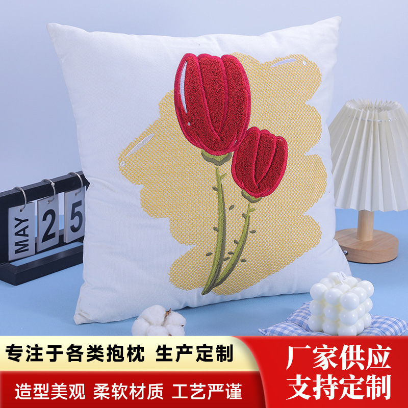 新款现代简约水墨画花朵棉麻抱枕套郁金香靠枕靠垫套时尚家居靠枕