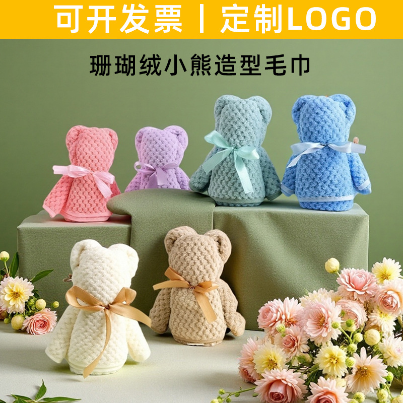 珊瑚绒菠萝格小熊毛巾结婚伴手礼喜铺满月周岁回礼创意礼品方巾