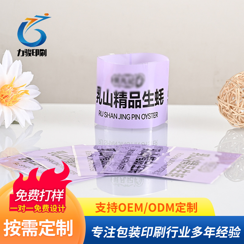 定制收缩膜生蚝包装热收缩标签pet彩印珠光膜金属可易撕线热缩膜