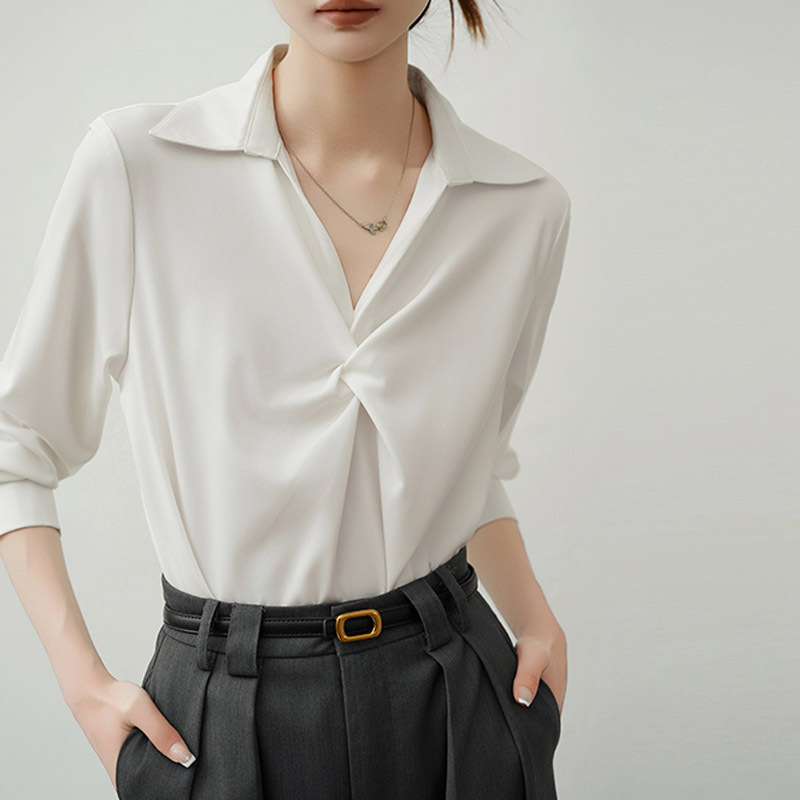 涤棉秋新款白色衬衫女内搭宽松气质冷淡系高级感通勤衬衣